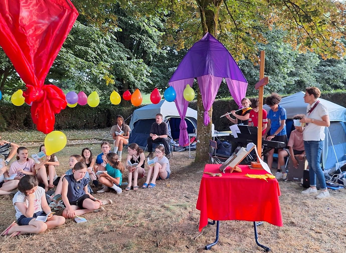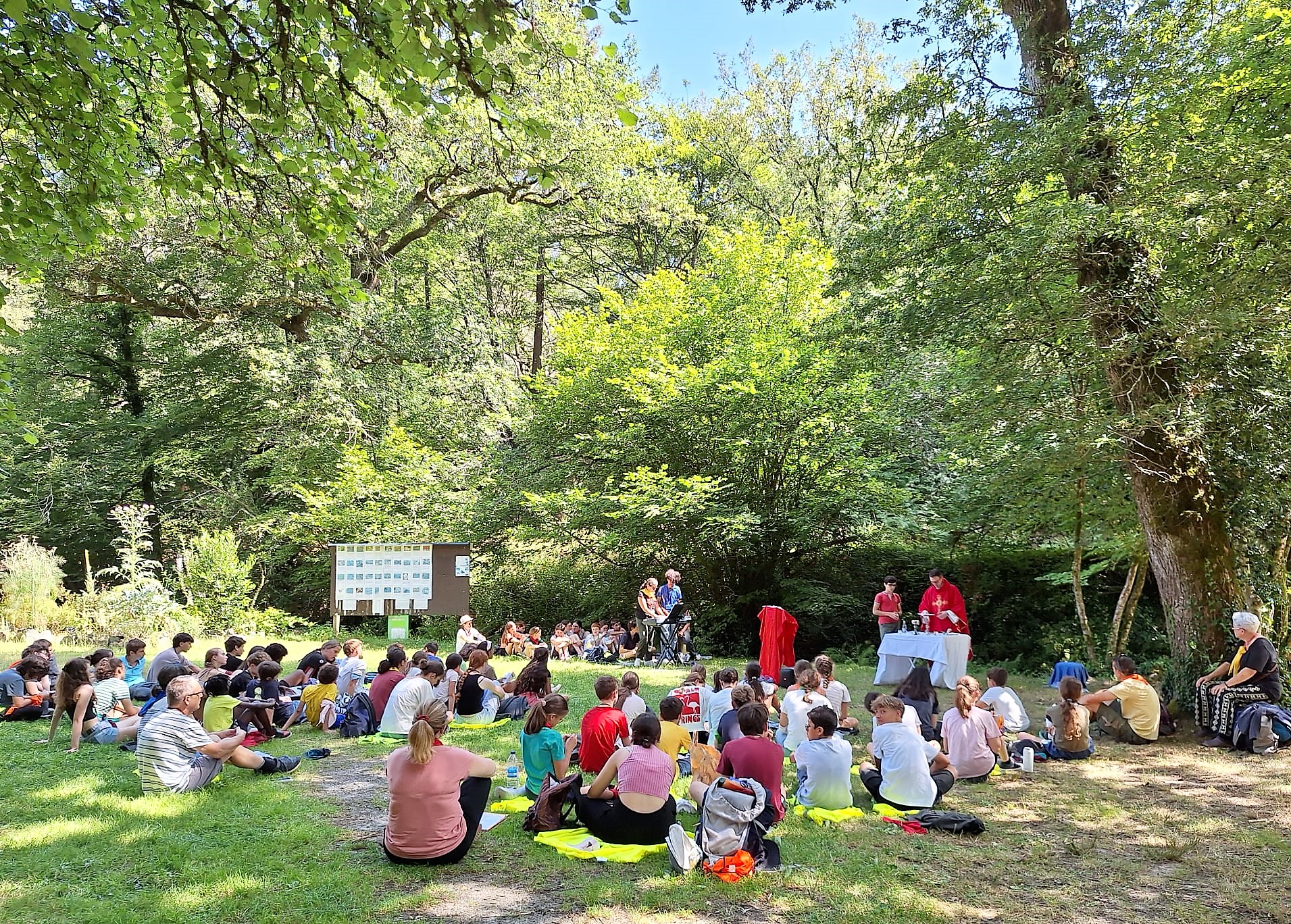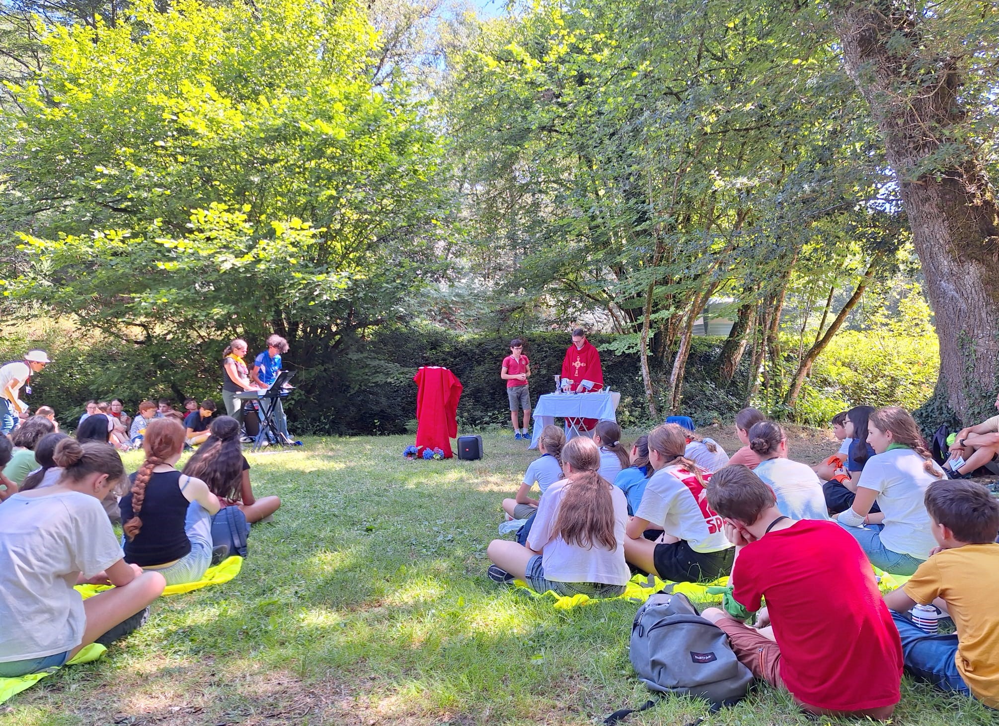 Le mercredi, nous avons marché vers la chapelle de La Graie pour recevoir le sacrement de Réconciliation. Après le repas partagé, ce fut le moment des olympiades. Les jeunes ont fait équipe, et les animateurs aussi. Plusieurs jeunes revenaient pour la deuxième, troisième et même la quatrième fois, heureux de retrouver les amitiés nouées au fil des ans.