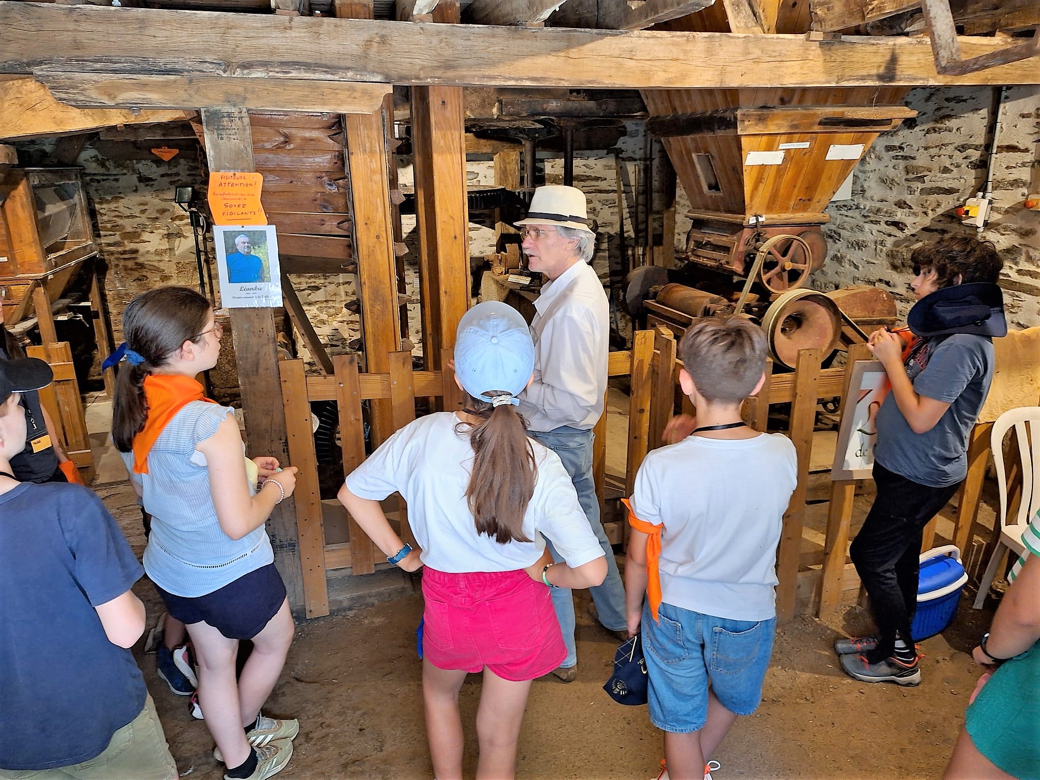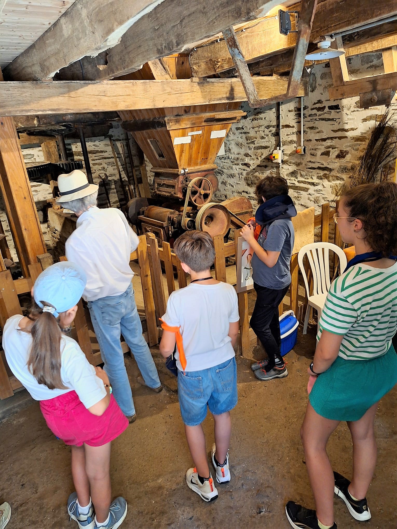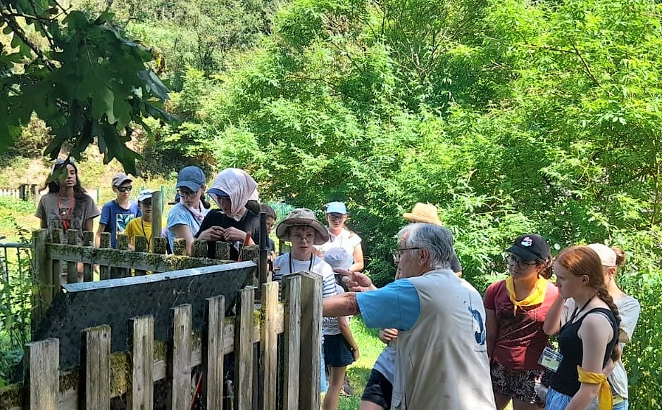 Le lundi nous nous sommes adaptés à la forte chaleur. Nous avons marché par équipes jusqu’à un moulin à eau, dans un lieu ombragé. Première découverte pour certains jeunes : une messe en plein air, dans une église à « ciel ouvert ». Un jeune a dit : « je ne savais pas que c’était possible, c’est top l’ambiance chez les cathos ». Puis des bénévoles, des passionnés, nous ont fait visiter le moulin et le musée et ont même fait fonctionner la roue. Les jeunes ont pu renouveler les vœux de leur baptême grâce au Père Xavier Laporte-Weywada. Nous avons