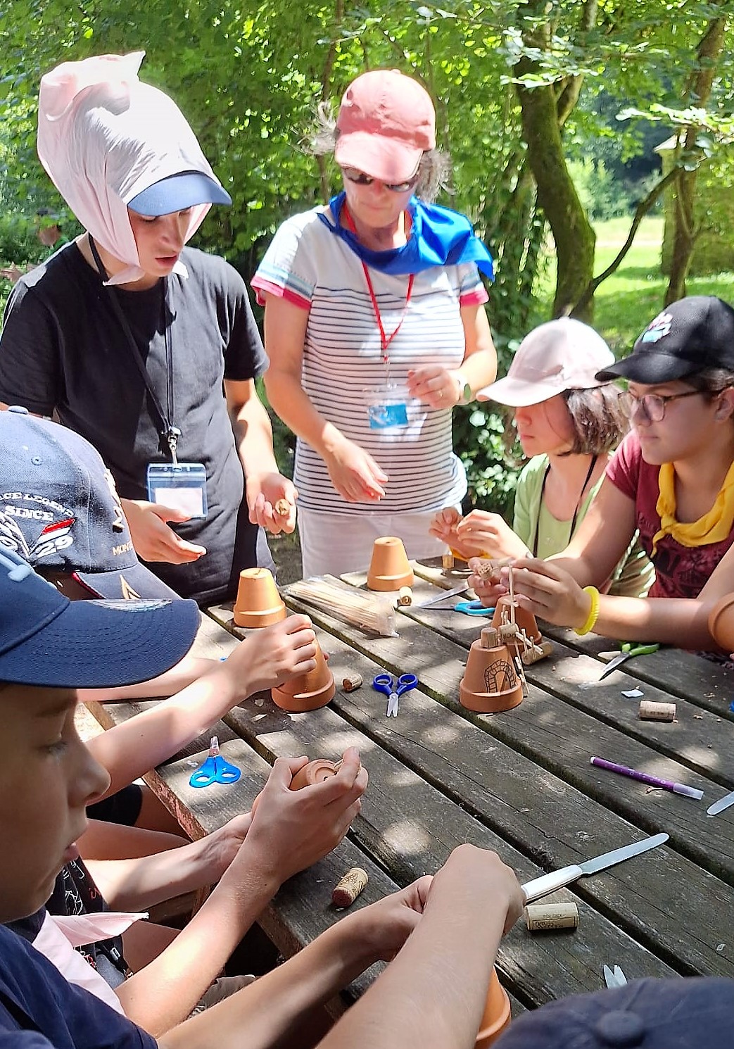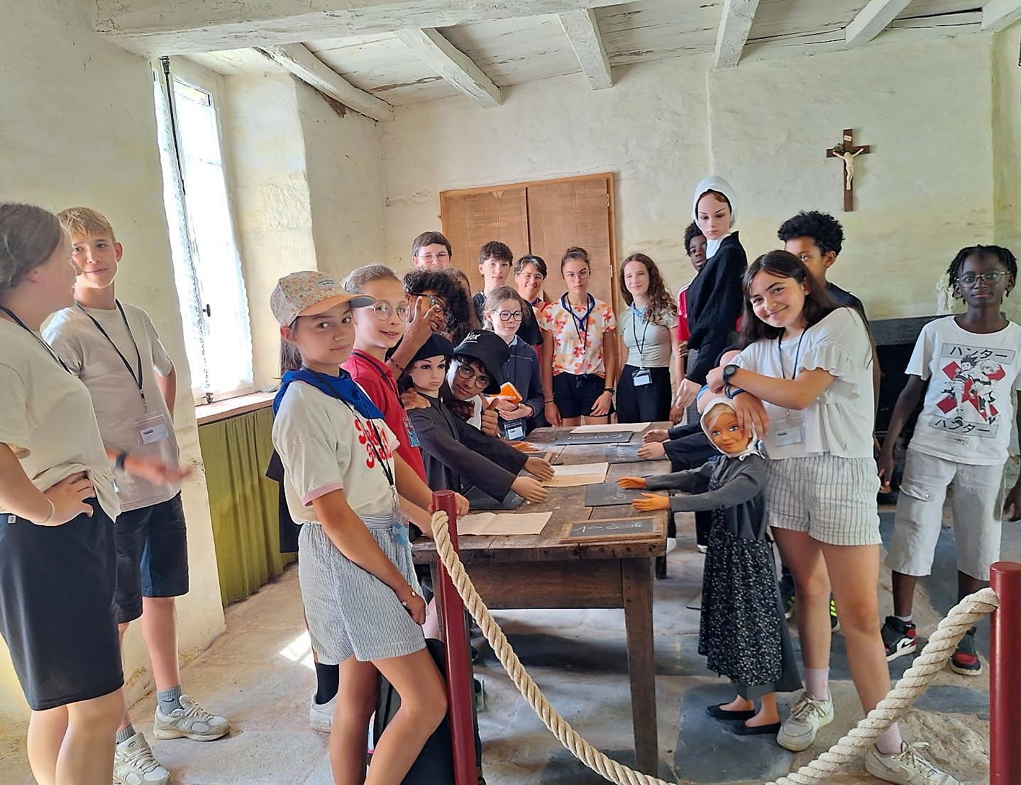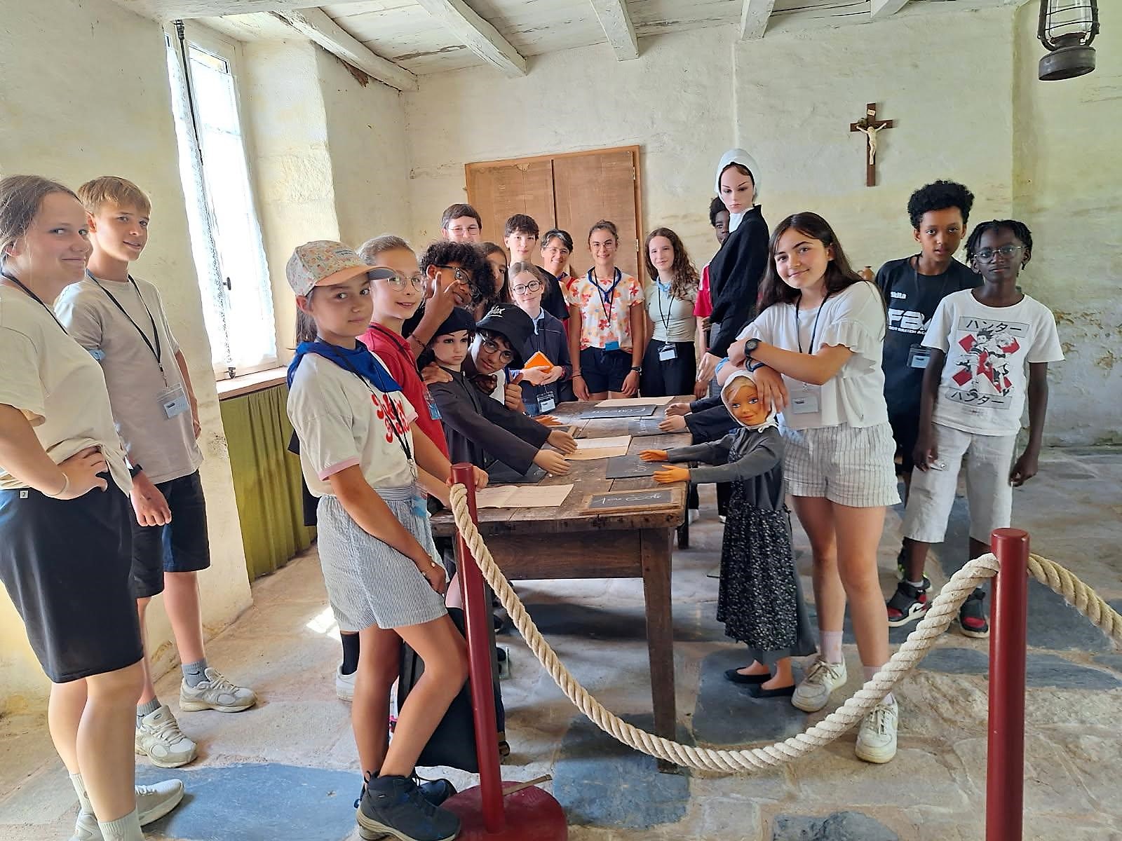 Le lundi nous nous sommes adaptés à la forte chaleur. Nous avons marché par équipes jusqu’à un moulin à eau, dans un lieu ombragé. Première découverte pour certains jeunes : une messe en plein air, dans une église à « ciel ouvert ». Un jeune a dit : « je ne savais pas que c’était possible, c’est top l’ambiance chez les cathos ». Puis des bénévoles, des passionnés, nous ont fait visiter le moulin et le musée et ont même fait fonctionner la roue. Les jeunes ont pu renouveler les vœux de leur baptême grâce au Père Xavier Laporte-Weywada. Nous avons